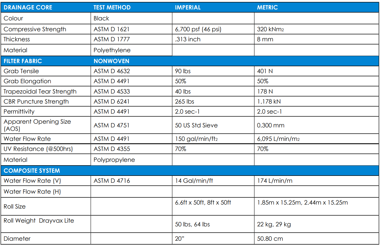 (8 mm) dimple height, providing a drainage capacity of 12 gal/min/ft